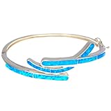 Shiny 925 sterling silver bangle carefully inlaid with stunning blue opal (simulated). ...Read more Details