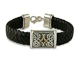 √√√7.5 Inches 14K Gold, Sterling Silver & Garnet Tree of Life Leather Bracelet Features